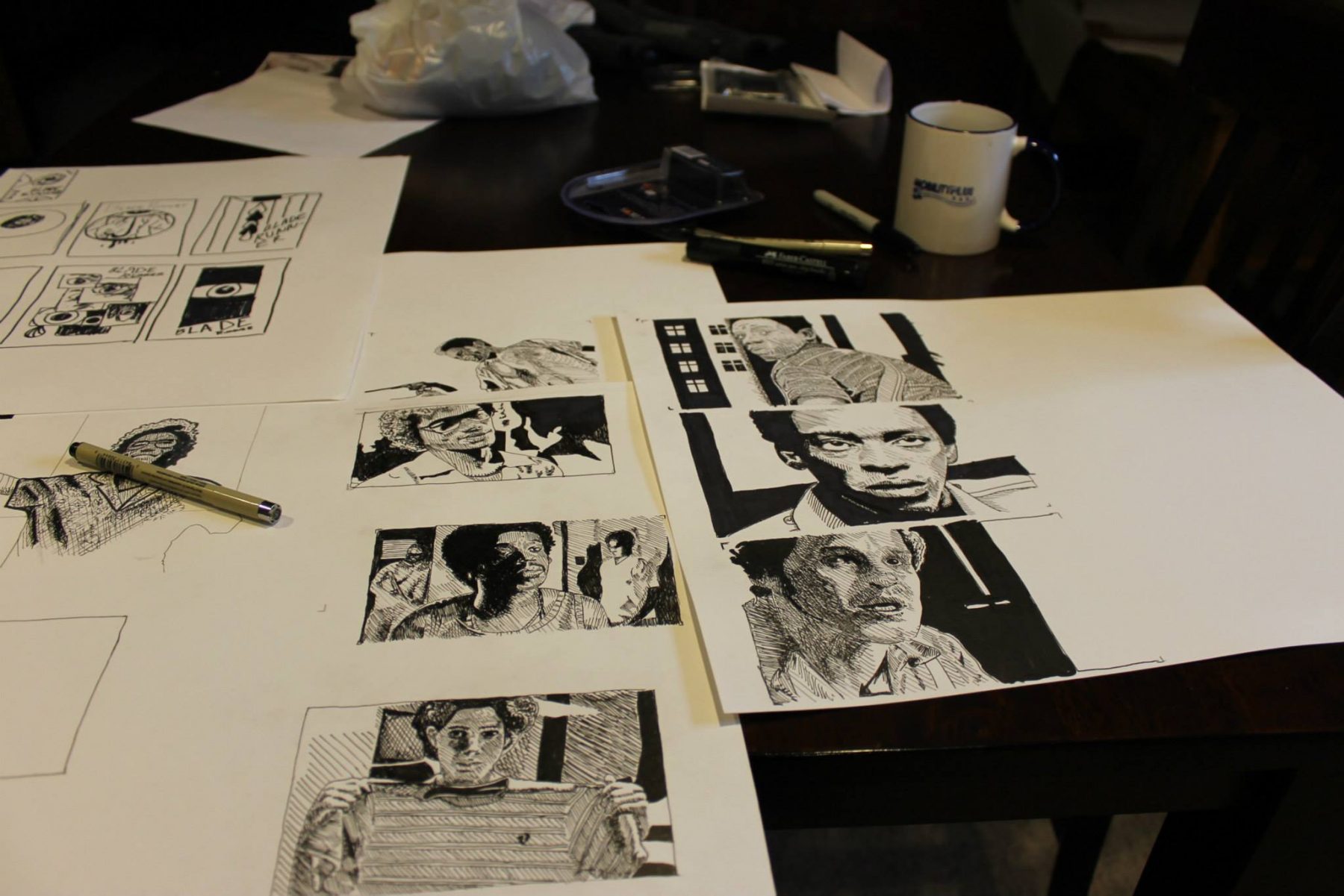 The concept of adding the characters came a bit later. I was coming up with concepts in previous sketches that were very character heavy. This movie has some great characters and amazing costume design, and I really wanted to capture them. I thought that adding their photos to the film negatives was a clever way to combine both concepts. Benny, Lil-Ze, Carrot and Knockout Ned were arranged based on their alliances in the film. Rocket was placed closest to the film cartridge, and I wanted Shaggy to be in the background since his story was the background story that kicked off the film itself.