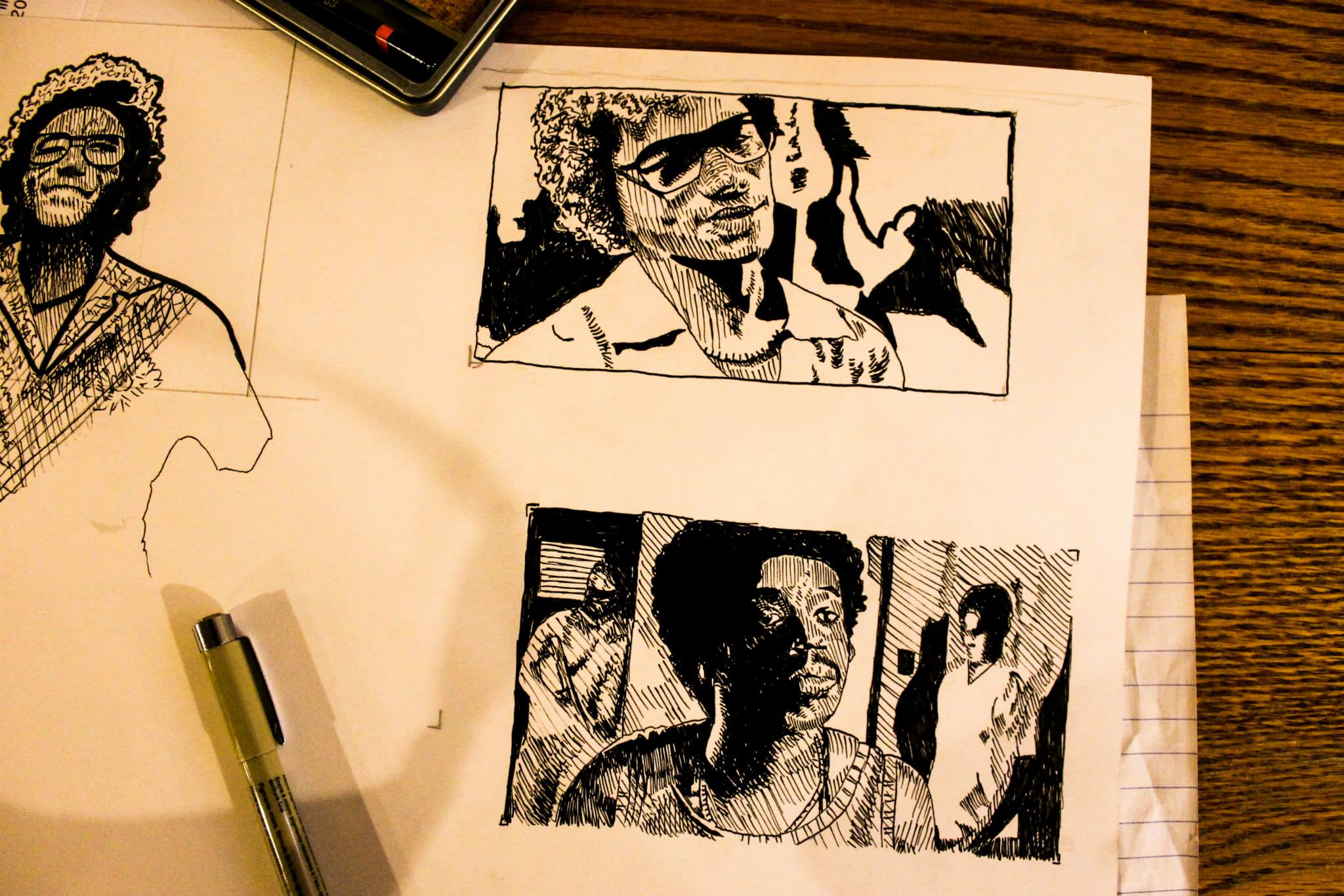 The concept of adding the characters came a bit later. I was coming up with concepts in previous sketches that were very character heavy. This movie has some great characters and amazing costume design, and I really wanted to capture them. I thought that adding their photos to the film negatives was a clever way to combine both concepts. Benny, Lil-Ze, Carrot and Knockout Ned were arranged based on their alliances in the film. Rocket was placed closest to the film cartridge, and I wanted Shaggy to be in the background since his story was the background story that kicked off the film itself.