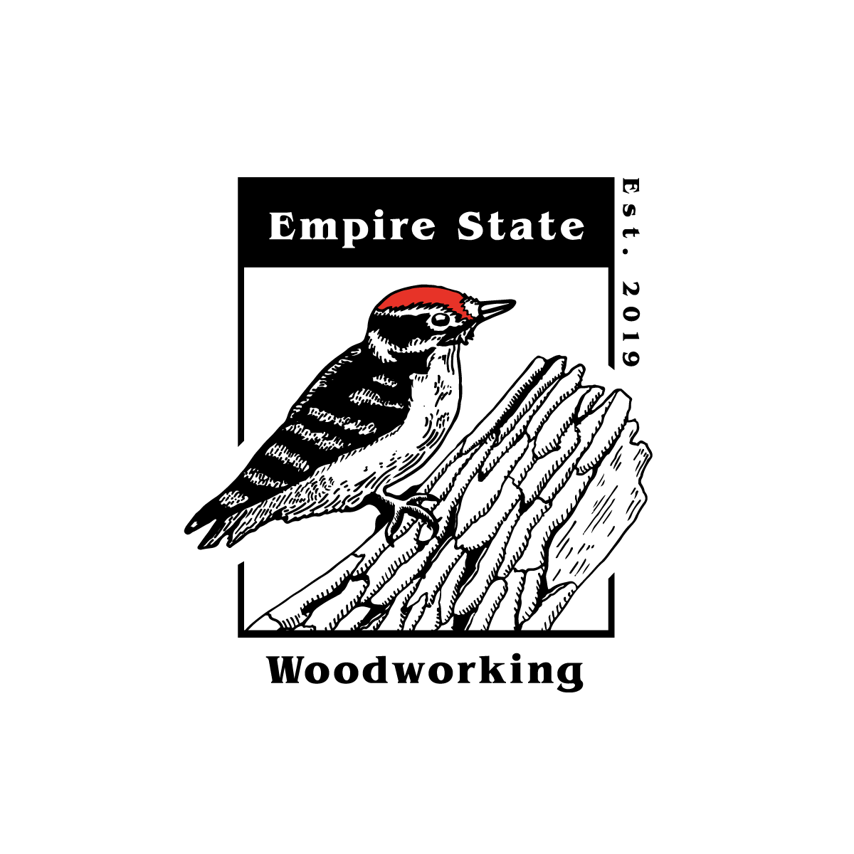 The final logo successfully embodies Empire State Woodworking’s dedication to craftsmanship, local pride, and natural inspiration. The Downy Woodpecker serves as a perfect metaphor for their work—precise, enduring, and deeply connected to the materials they shape. The logo’s aesthetic seamlessly blends tradition with modernity, making it versatile across branding applications, from signage to furniture tags.