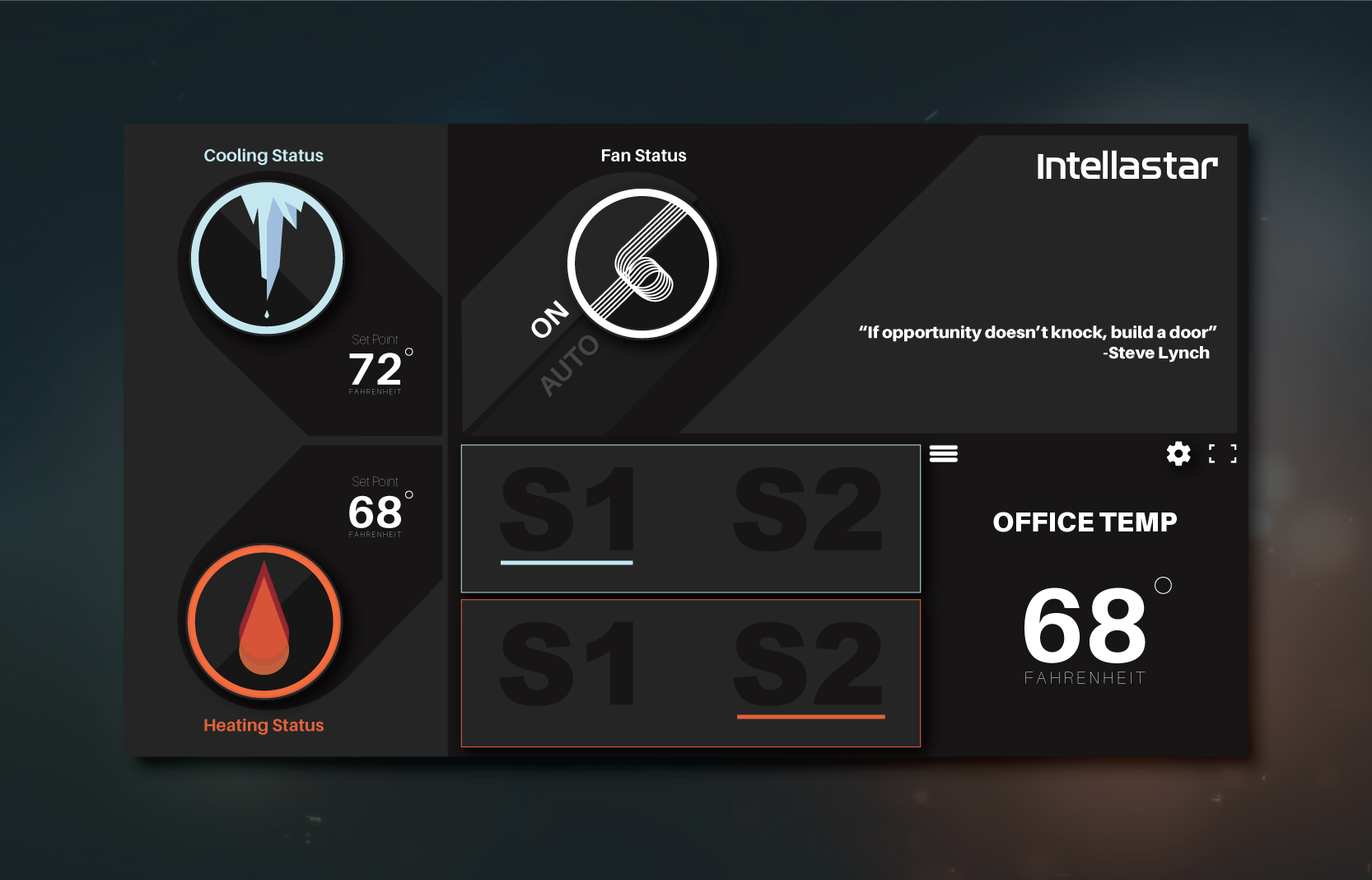 We choose do display the information on the screen with a black and white color pallet. The high contrast between black and white helped to make the important information on the dashboard stand out more. We also used pops of hot and cold colors to highlight other important information pertaining to heating and cooling.